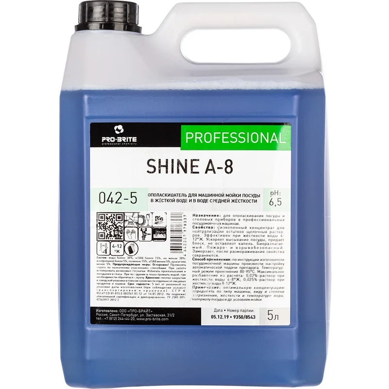 Ополаскиватель для посудомоечной машины Pro-Brite Shine A-8 5л, 042-5