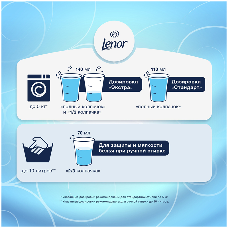 Придает мягкость, свежесть, антистатик, помогает сохранить форму одежды, помогает защитить ткань от преждевременного изнашивания.