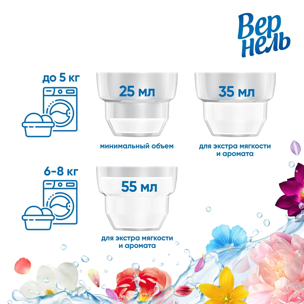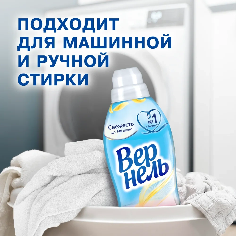 Придает белью приятный аромат и дарит вам ощущение свежести, которую приносят первые лучи солнца. Благодаря формуле Vernel с аромакапсулами кондиционер обеспечивает интенсивную свежесть до 10 недель (при хранении белья). Продукт придает белью невероятную мягкость, делая его приятным на ощупь. Гладить белье становится намного легче, а сохнет оно намного быстрее. Средство также обладает антистатическим эффектом. Благодаря удобной крышке-дозатору вы всегда будете знать, сколько средства необходимо добавить. Концентрированного средства хватает на длительное время (30 стирок). Подходит для всех видов тканей.