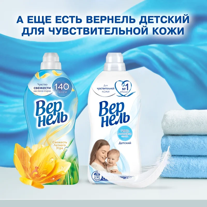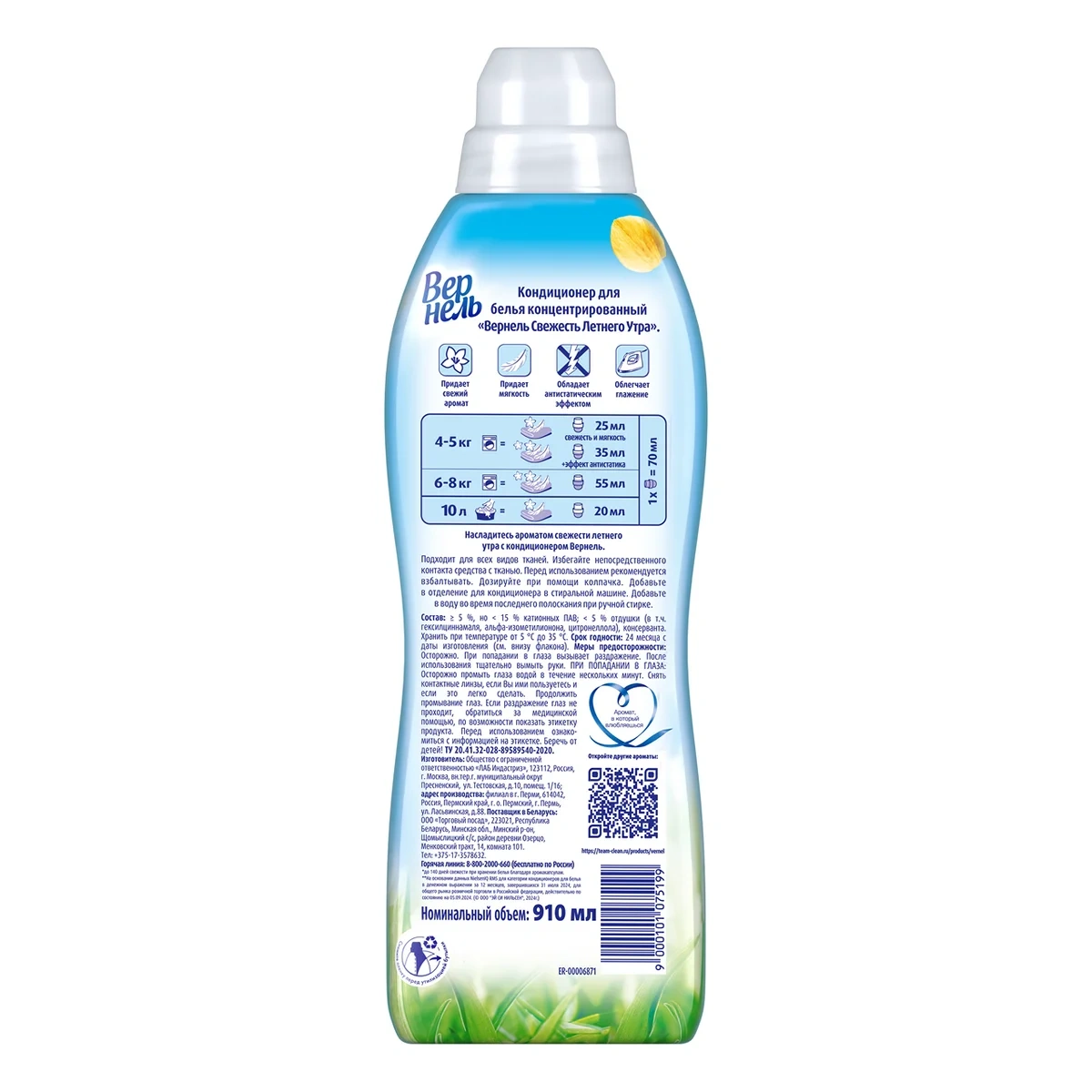 Кондиционер для белья Вернель 910мл, свежесть летнего утра, суперконцентрат