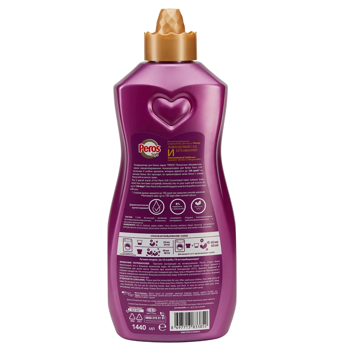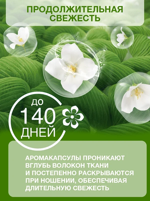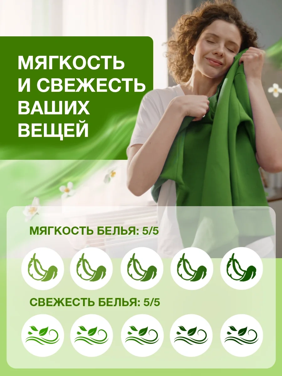 Добавляется в воду при последнем полоскании, что обеспечивает более качественную стирку и мягкость белья.