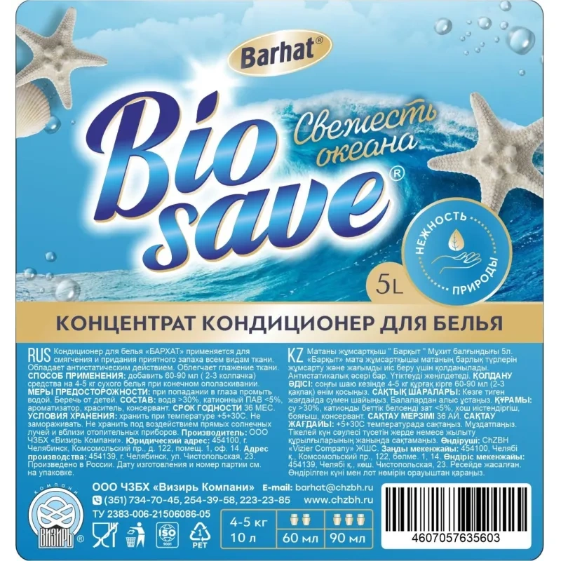 Кондиционер для белья Бархат-ULTRA свежесть океана 5л