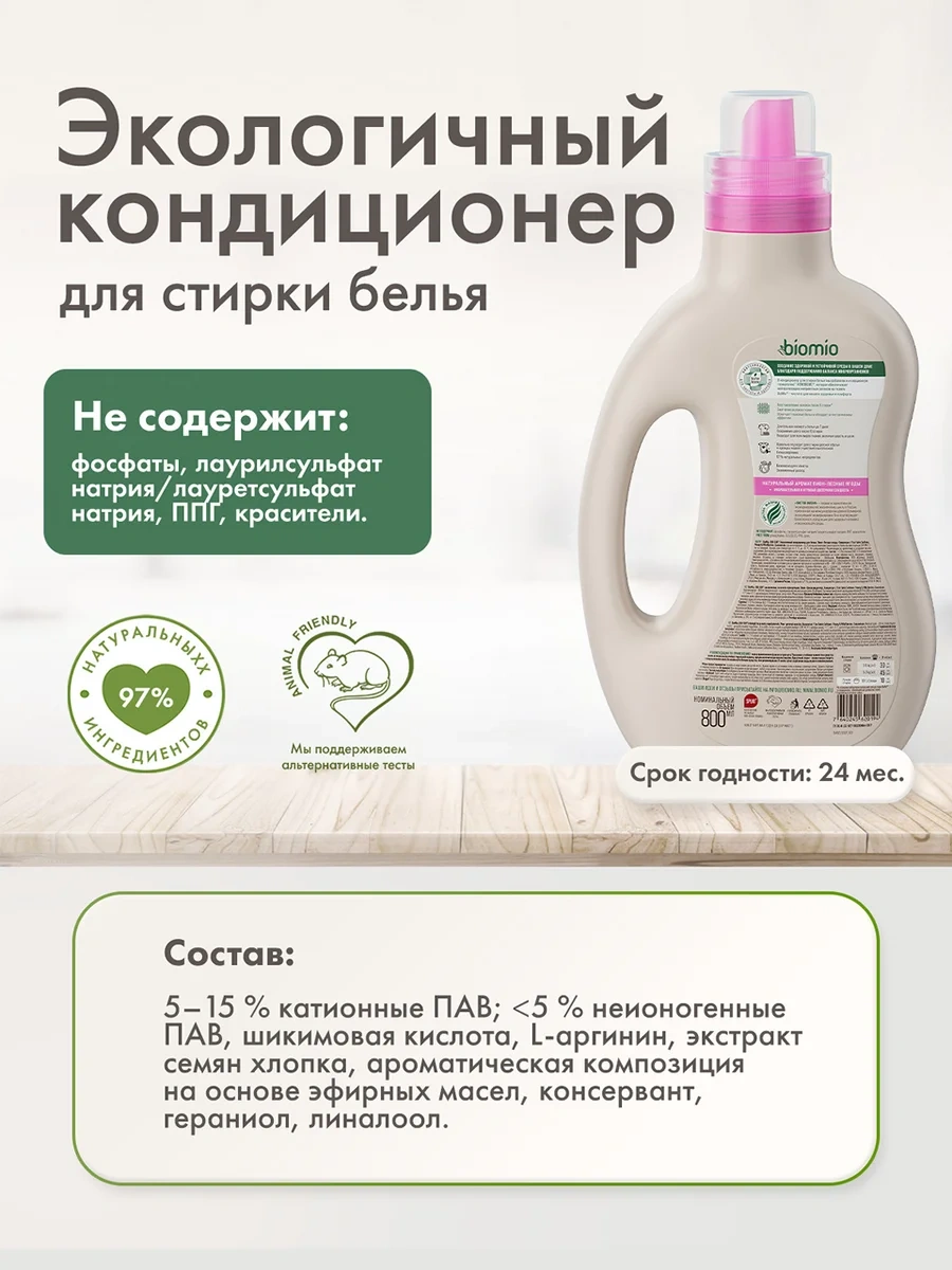 Откройте для себя экологичный кондиционер с инновационной технологией Homebiome, который эффективно устраняет запахи и обеспечивает длительный аромат. Подходит для всех типов тканей, включая шерсть и шёлк. Концентрированная формула на 97% состоит из натуральных компонентов. Продукт гипоаллергенен, подходит для детских вещей и одежды людей с чувствительной кожей. Натуральная отдушка, созданная на основе эфирных масел в сотрудничестве с ведущими парфюмерными домами, обеспечивает длительный и приятный аромат. Для стирки 3-5кг белья достаточно всего 30мл средства. Кондиционер смягчает белье, облегчает глажение, обладает антистатическим эффектом. Сертифицирован экомаркировкой Листок Жизни.