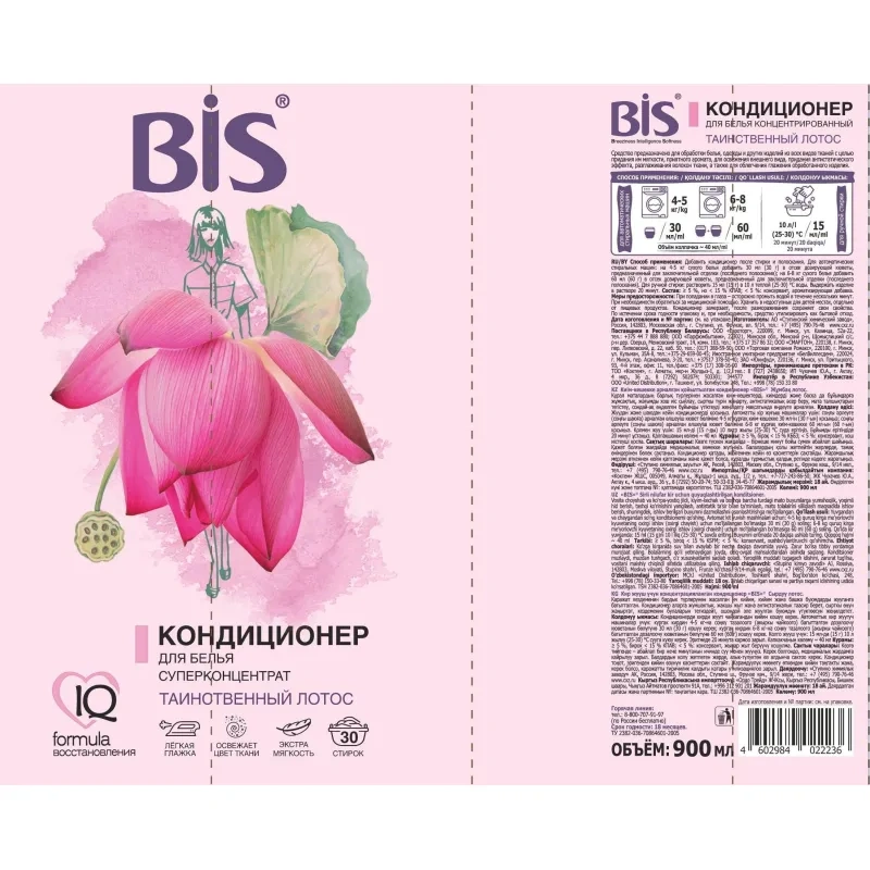 Кондиционер для белья BIS Таинственный Лотос концентрированный, 900 мл
