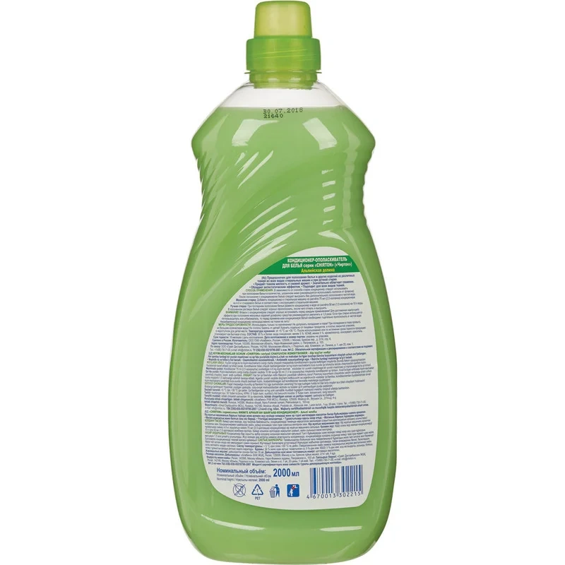 Кондиционер предназначен для полоскания белья и других изделий из различных тканей во всех видах стиральных машин и при ручной стирке. Придает тканям мягкость и свежий аромат, значительно облегчает глажение, обладает антистатическим эффектом. Подходит для всех видов тканей.