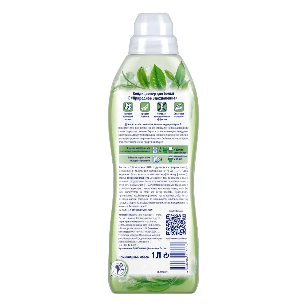 Бережно и деликатно ухаживает за любой одеждой. Благодаря современной формуле из катионных ПАВ и глицерина кондиционер Фреш обладает эффективными преимуществами.- Благодаря кондиционеру белье будет мягким и приятным на ощупь.- Средство E Природное Вдохновение дарит белью свежесть и приятный аромат, который сохраняется длительное время.- Кондиционер E Природное Вдохновение облегчает глажку и обладает антистатическим эффектом.