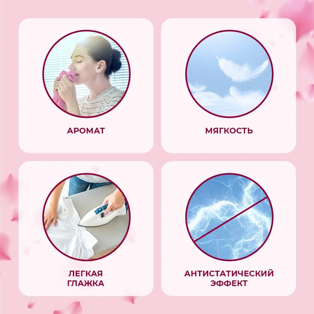 | Эффект | антистатический; устранение неприятных запахов; легкая глажка; смягчение ткани |