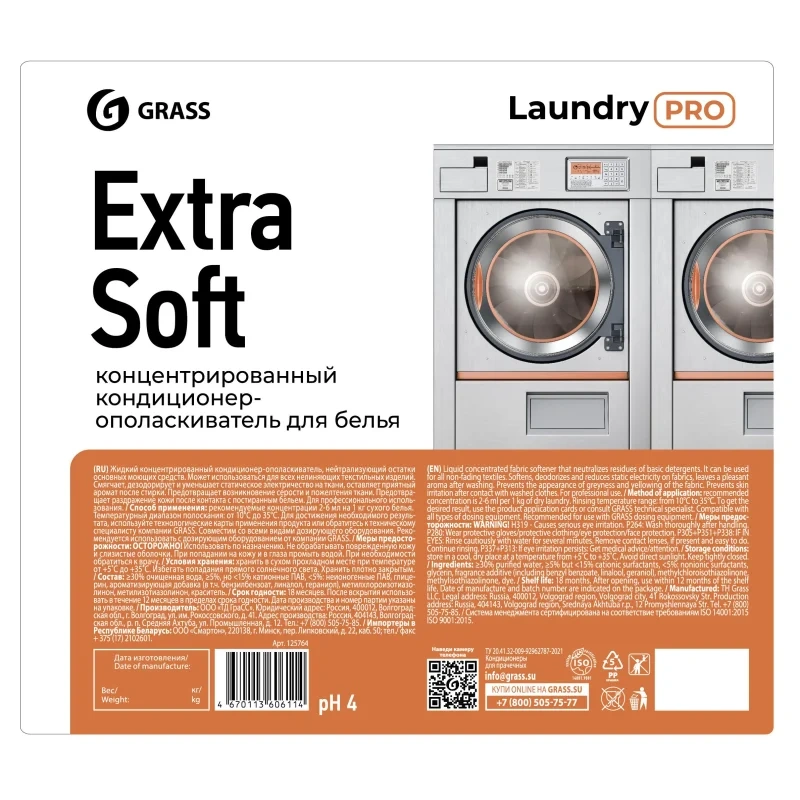 Кондиционер для белья Grass Extra Soft 20л, концентрат, 125764