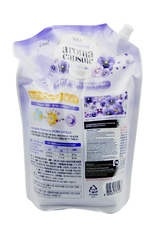 Кондиционер Porinse Aroma Capsule наполнит Ваши вещи нежным цветочным фиалковым ароматом. Смягчающее средство, которое содержит дезодорирующий состав на основе натуральных ароматических масел, обладающее ароматом, остающимся на белье в течении долгого времени. Ликвидирует неприятные запахи, такие как запах пота, табака и другие. Частицы размягчающего состава проникают глубоко в ткань, смягчают волокна тканей, устраняют статистическое электричество и облегчают процесс глаженья. Предотвращают появление катышков и поднятие ворса ткани, а также предотвращает появление дефектов на ней. Обладает очаровательным цветочным ароматом. Абсолютно безопасен для окружающей среды.