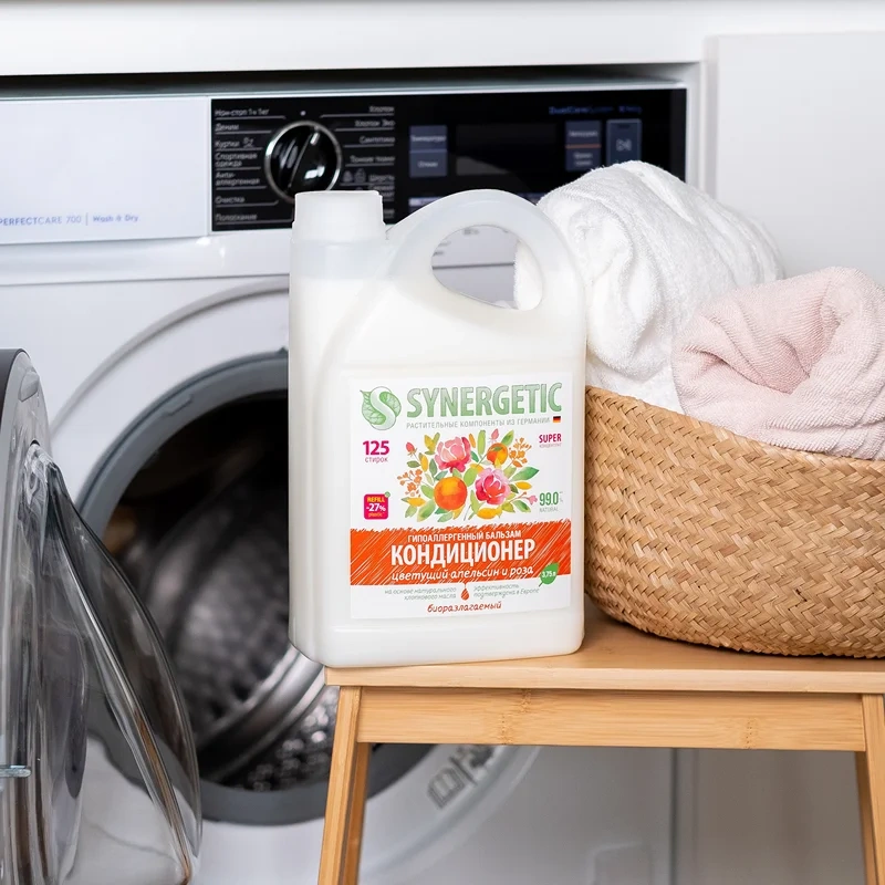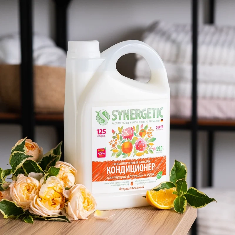 Кондиционер для белья Synergetic Цветущий апельсин и роза 3.75л, биоразлагаемый, концентрат