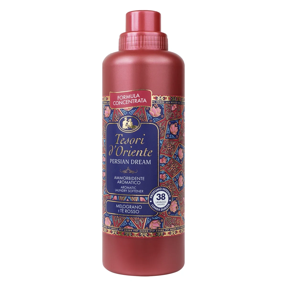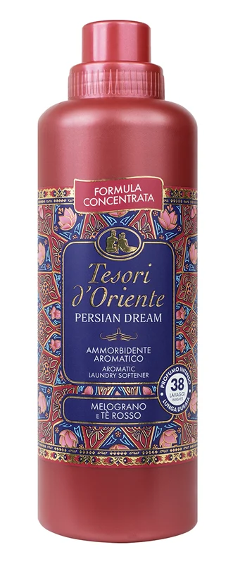 Особенности концентрированного парфюмированного кондиционера для белья Tesori d'Oriente (38 стирок): -кондиционер для белья долгое время сохраняет аромат белья при хранении. -кондиционер для стирки придает невероятно приятный аромат и мягкость белью. -кондиционер для стирки облегчает глажку и обладает антистатическим эффектом. -обладает насыщенным букетом ароматов. Подходит для всех видов тканей. Tesori d’Oriente Персидские грезы принадлежит к группе восточных ароматов, чувственные нотки жасмина и пряные ноты граната смешиваются с теплыми оттенками красного чая, уступая место сияющей и чарующей эссенции, воспевающей возрождение природы. Консистенция кондиционера для белья подобрана оптимально для удобства добавления в отсек стиральной машинки. В составе использована инновационная технология капсулированного аромата - микро капсулы раскрываются постепенно: после стирки лёгкий аромат ощущается длительностью до двух недель. Ароматы, произведенные в Италии, созданы на основе натуральных масел, с натуральными компонентами.