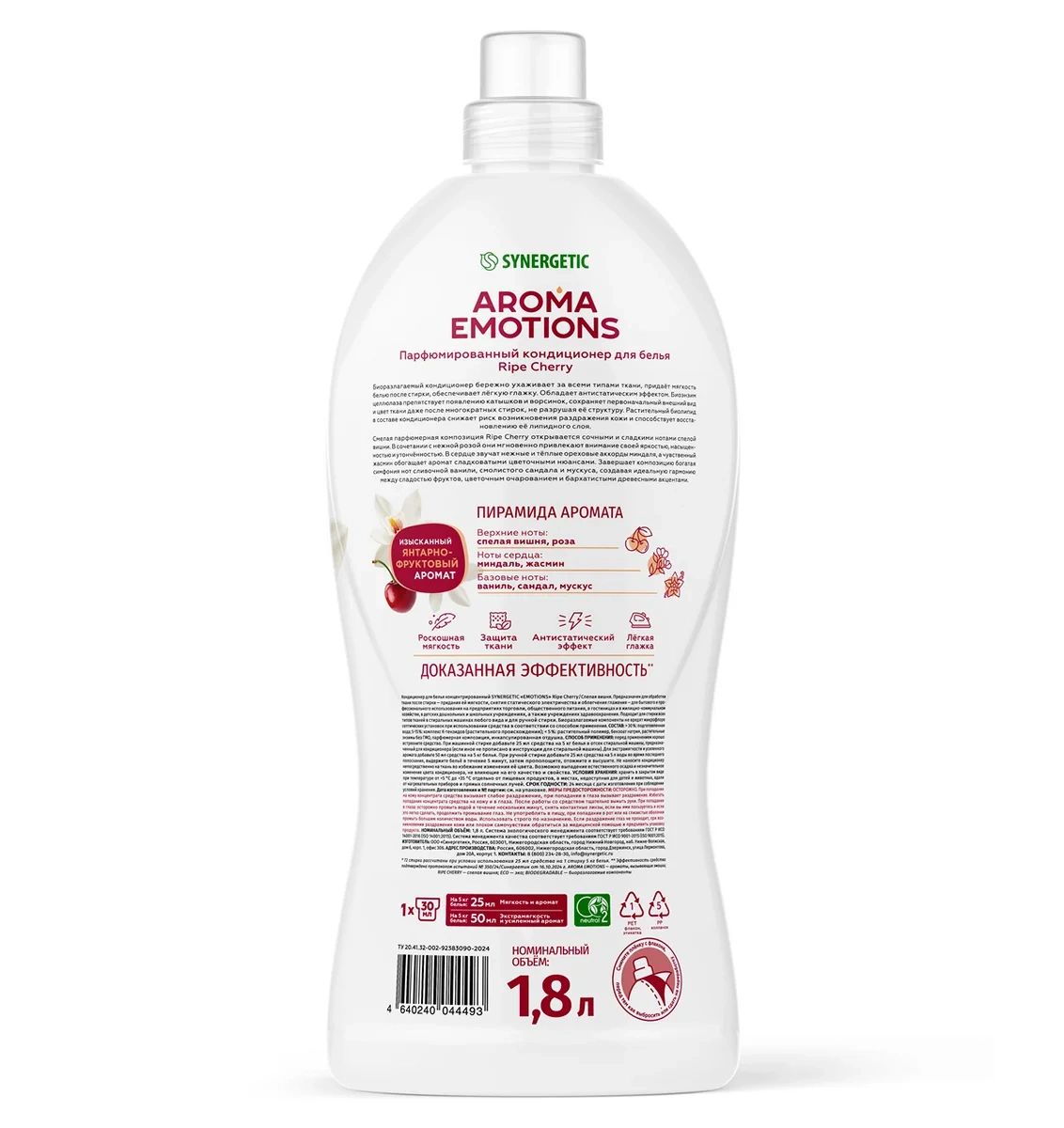 5%, но менее 15% катионных ПАВ; менее 5% отдушки, консерванта.Характеристики