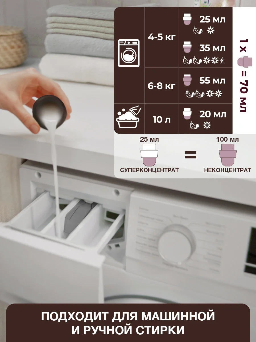 Избегайте непосредственного контакта средства для стирки с тканью.Состав