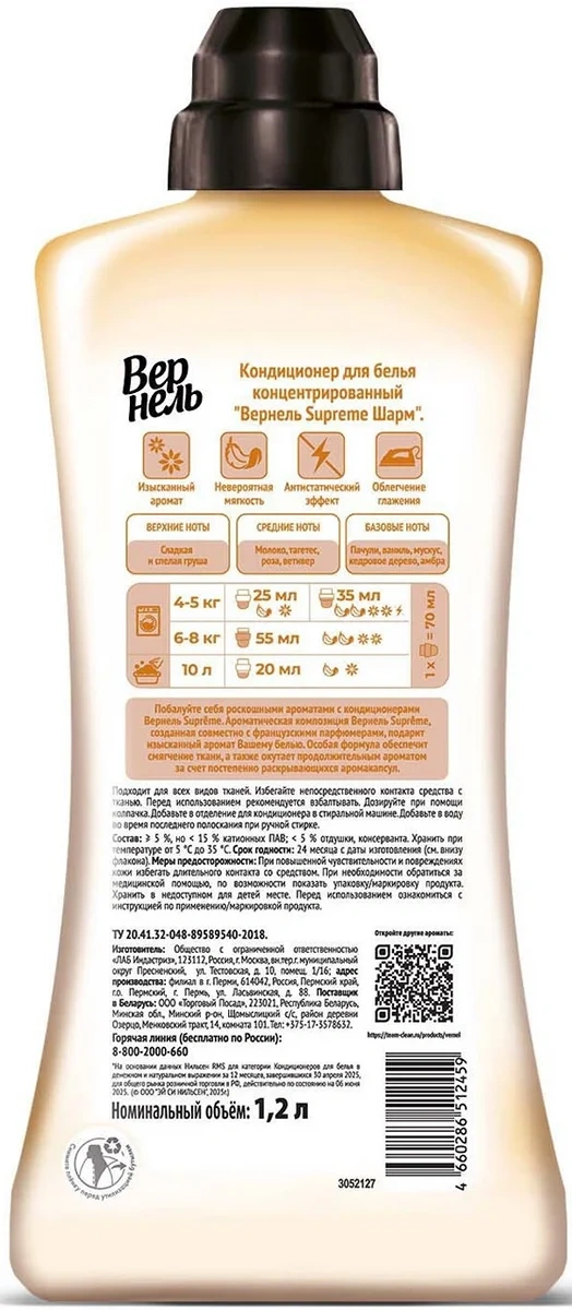 Отзывы о «Кондиционер для белья Вернель Supreme Шарм, 1.2л»