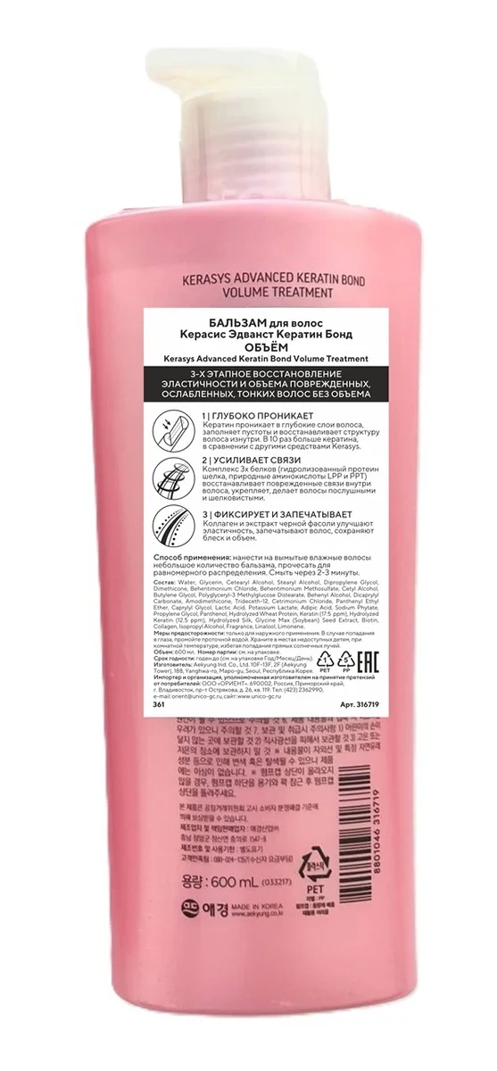 Гидролизованный шелк, коллаген, кератин и соевый белок заполняют дефекты кутикулы, выравнивая структуру волоса, делают его эластичным, предотвращая ломкость, а также оказывают антистатический эффект. После всего лишь одного применения вы заметите, что волосы не только выглядят ухоженными, но и лучше поддаются укладке.