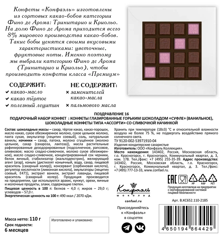 Классическая комбинация интенсивного вкуса шоколада с изысканными начинками делает этот продукт великолепным выбором независимо от случая и времени года.