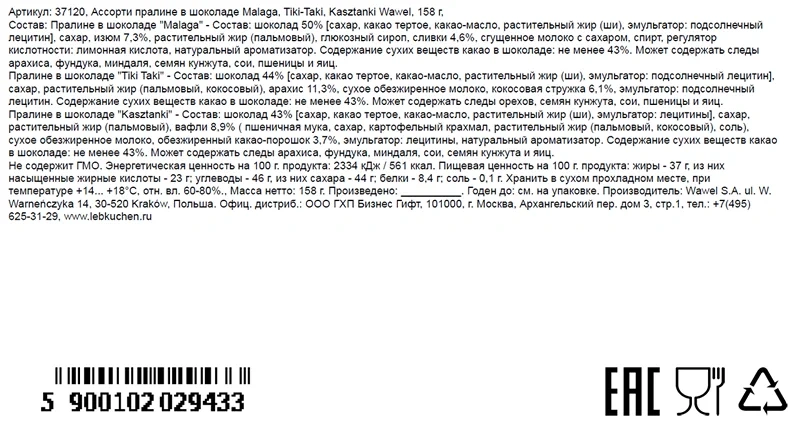 Фундук, сахар, тертый шоколад, масло какао, молоко цельное сухое, миндаль, лецитин соевый эмульгатор, ванилин ароматизатор искусственный.