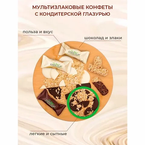 Мультизлаковые конфеты с темной кондитерской глазурью.