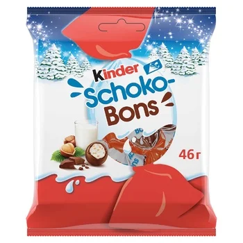 KinderSchoco-Bons (Киндер Шоко-Бонс) - это нежная молочная начинка, кусочки лесных орехов и неповторимый вкус шоколада. Kinder Schoco-Bons производится на одной из фабрик компании Ferrero в Бельгии, славящейся своими шоколадными традициями. Удобные пакетики разных размеров (46 г и 125 г) подойдут и для скромной, и для большой компании! Конфетки в индивидуальной упаковке удобно брать с собой. Дома, в школе, на прогулке – наслаждайтесь сами, радуйте друзей и близких каждый день!