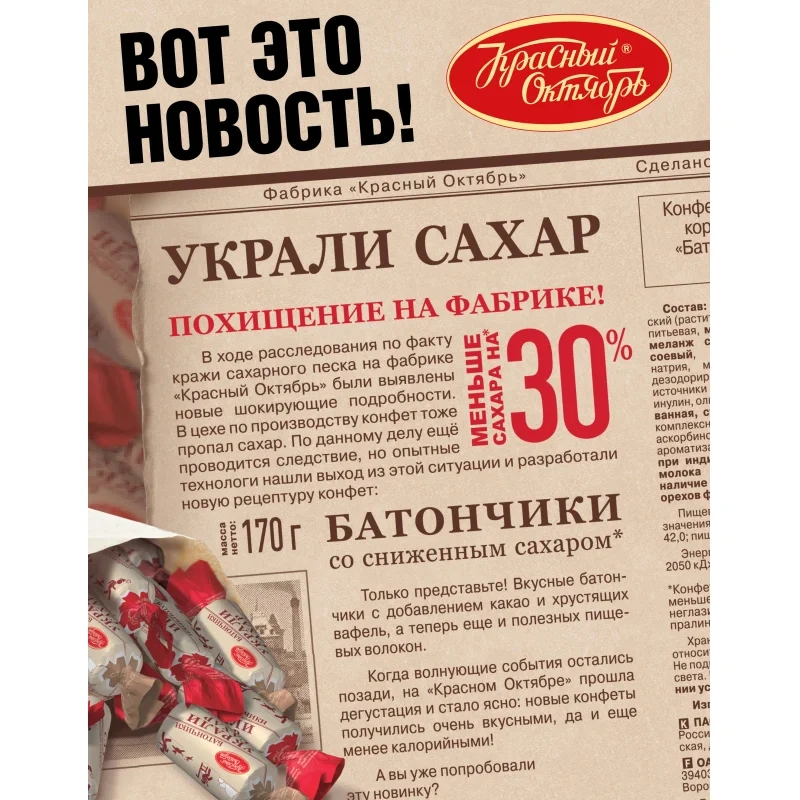 Конфеты фасованные Красный Октябрь Украли сахар, батончики, 170г