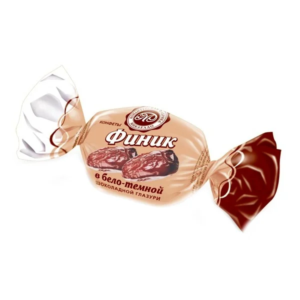 Конфеты 'Финик' в бело-темной шоколадной глазури - это настоящее лакомство для любителей экзотических фруктов и сладостей. Ярко выраженный вкус финика оттеняет ароматная, нежная сладость шоколада. Эти конфеты не только вкусное, но и полезное лакомство. Поэтому есть его можно и детям. Лакомство может стать прекрасным дополнением к домашнему чаепитию или сладкому столу к приему гостей.