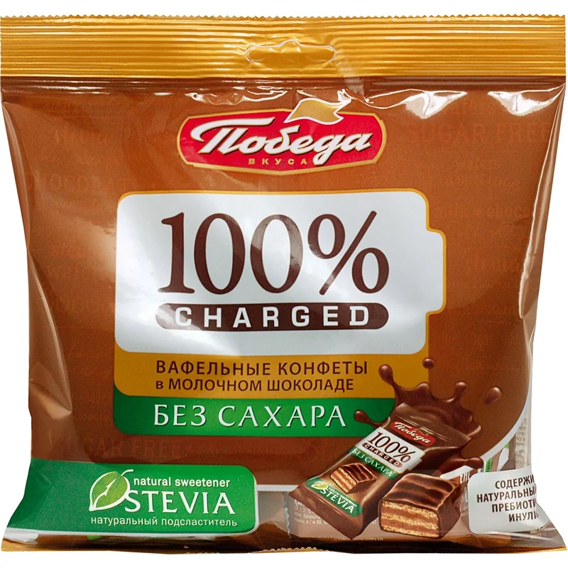 Сочетание проверенного временем рецепта, инновационного подхода в производстве полезных продуктов, а также использование только качественных ингредиентов, создают любимый всеми вкус с максимальной пользой. Корпус конфеты состоит из нескольких слоев вкуснейшей вафли, которая приятно хрустит и потом нежно тает во рту, а покрывает конфету настоящий молочный шоколад без добавления сахара с натуральными подсластителями: инулином и стевией.