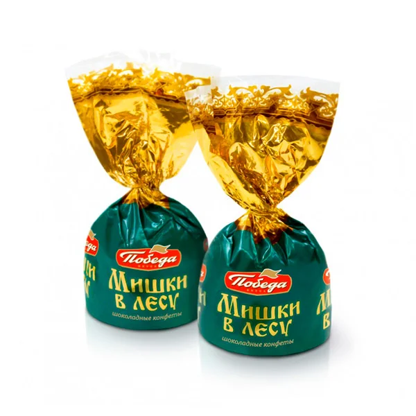 Конфеты шоколадные фасованные «Мишки в лесу» изготовлены на кондитерской фабрике «Победа». В упаковку входит 2 кг конфет из молочного шоколада с вафельной начинкой.