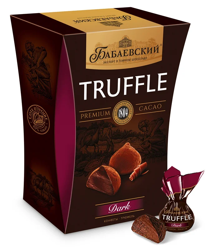 Трюфели «Победа вкуса» - традиционный премиум-продукт, созданный по классическому рецепту. Внутри находится нежное трюфельное «сердце» или Ganache из сливок и шоколада, пропитанное алкоголем (коньяком, амаретто или ромом). Внешняя оболочка выполнена из сливочного шоколада, придающего изделию изысканный вкус и текстуру.