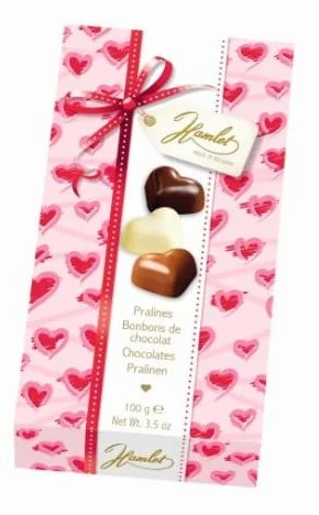 Бельгийская компания Hamlet производит премиальную продукцию из шоколада c 1956, уделяя особое внимание экологичности и инновациям. Преемственность семейных традиций, современное оборудование, соответствие международным стандартам, включая особую заботу об окружающей среде, разнообразие видов, вкусов и начинок шоколадной продукции и ее высокое качество сделало Hamlet мировым поставщиком в более чем 100 стран. Шоколадные конфеты из белого, молочного и темного бельгийского шоколада с карамельной начинкой пралине. Отличный вариант для подарка. Может содержать незначительное количество орехов, молока и сои. Великолепный десерт, приготовленный по оригинальному рецепту. Он великолепно сочетается с ароматным кофе или бодрящим чаем. Ароматные конфеты в тающем шоколаде подарят море положительных эмоций и отличное настроение.
