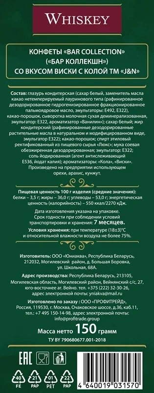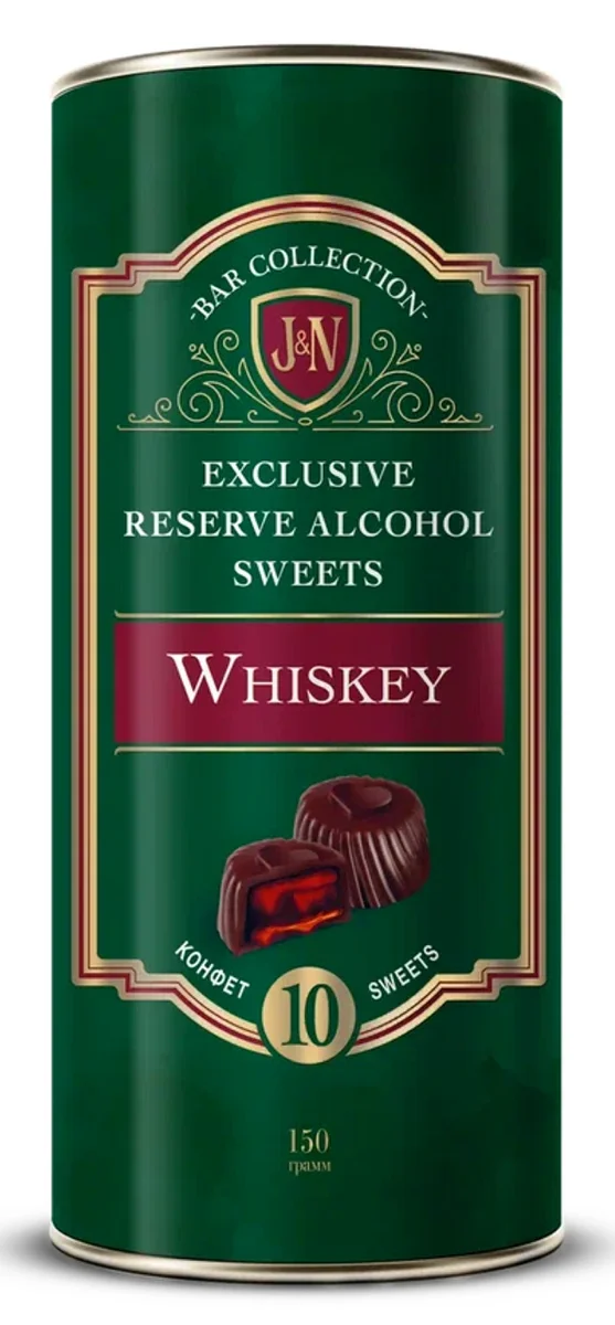 Whiskey and Coke(виски-кола) - барная классика и звезда многих голливудских фильмов. Коктейль с более чем 100 летней историей. Один из топовых коктейлей во всех барах мира. J&N Bar Collection представляет смелое прочетние классики завёрнутой в изысканную глазурь.Шоколадные конфеты с виски подарят отличное настроение и заряд бодрости всем без исключения.