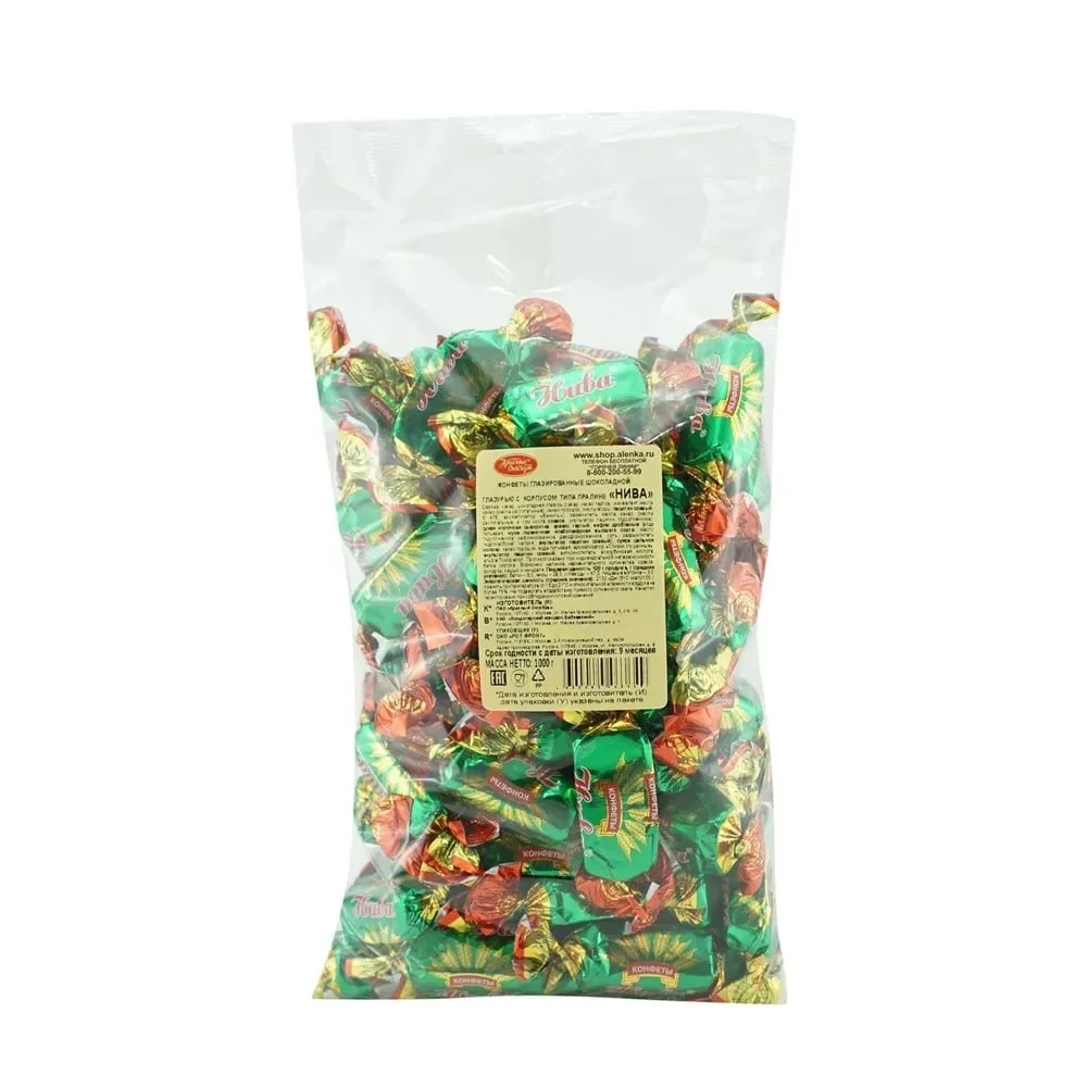 Шоколадные конфеты пралине с тертым арахисом и мелкой вафельной крошкой, покрытое тонкой шоколадной глазурью – вот что такое конфеты Нива от фабрики Красный Октябрь. Нежная тающая ореховая сладость, а в дополнение к ней – легкий снежных хруст крошечных вафелек. Замечательное дополнение к чаю или крепкому кофе.