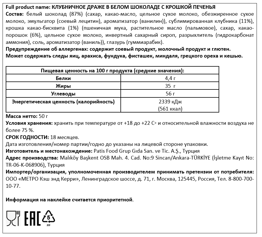 Сгущенное с сахаром молоко (молоко нормализованное, сахар (сахароза), сахар молочный (лактоза)), сахар, вода питьевая, масло сливочное, цукаты измельченные, патока, ароматизатор Ваниль, спирт этиловый ректификованный, коньяк (спирт коньячный выдержанный, сахарный сироп, краситель сахарный колер I, вода питьевая), ароматизаторы: Лимон, Ваниль, комплексная пищевая добавка (антиокислители: аскорбиновая кислота, Е306).