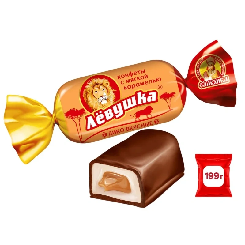 Конфеты Левушка с мягкой карамелью Славянка 199г
