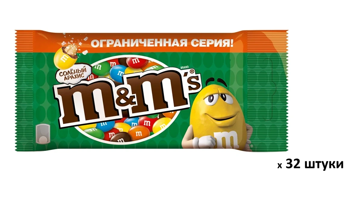 Конфеты M&M's драже с арахисом, солью и молочным шоколадом, 45г x 32 шт