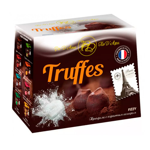 Французские трюфели CHOCOLAT MATHEZ PoD'Aree с игристым сахаром - удивительный микс от французских кондитеров. необыкновенное сочетание традиционного французского трюфеля и взрывающейся карамели изумляет и вызывает радость у детей и взрослых.