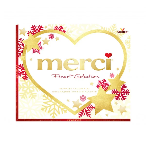 Набор конфет Merci, ассорти 200 г, представляет собой серию шоколада, изготовленного только из высококачественных продуктов. Конфеты имеют четыре вкуса: ассорти, ассорти темный, ассорти молочный и ассорти миндаль. Каждая конфета упакована в индивидуальную упаковку из золотой фольги и прозрачной пленки, через которую виден фирменный оттиск Merci. Это сладкое лакомство в красивой коробке подходит для подарка учителю, друзьям или родственникам.