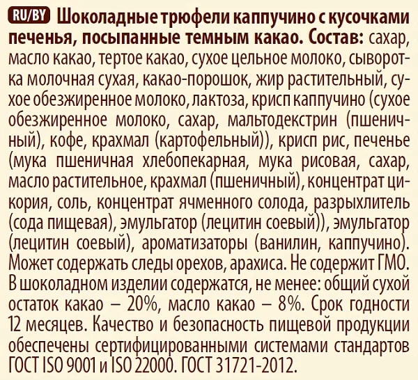 Конфеты Победа Вкуса Трюфели Айриш крем и каппучино, 200г