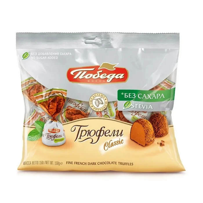 Конфеты Победа Вкуса Трюфели без сахара, с темным какао, 150г