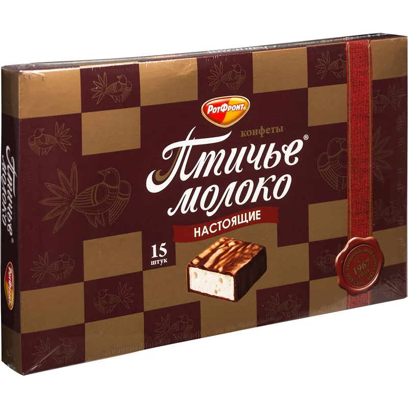 Нежные воздушные конфеты 'Птичье молоко' – это квадратики сливочно-ванильного суфле, покрытые темной шоколадной глазурью. Знакомый с детства нежный вкус сливочного пломбира, мягкая, как облако, текстура суфле и звонко хрустящая глазурь, на фоне которой начинка кажется еще более нежной. Тающее сладкое блаженство.