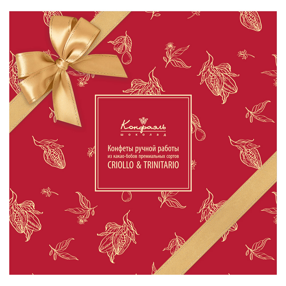 Стильная коробка конфет скрывает в себе удивительный вкус настоящего шоколада , такой подарок станет прекрасным дополнением к торжеству или сделает будний день ярче. Конфеты Конфаэль изготовлены из элитных сортовых какао-бобов категории Fino de Aroma сортов: Criollo и Trinitario.