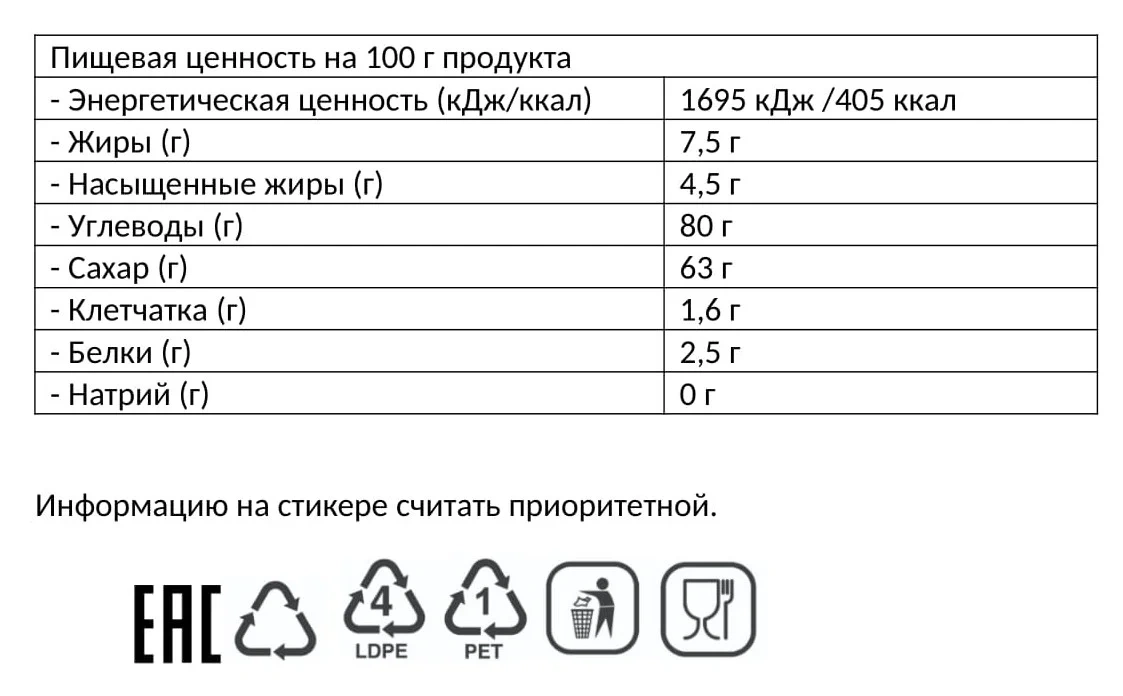 Сахар, фундук, какао-масса, какао-масло, эмульгатор: соевый лецитин, натуральный ароматизатор ваниль.
