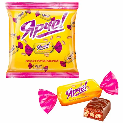 Конфеты шоколадные ЯРЧЕ! с арахисом и мягкой карамелью, 500 г, пакет, ш/к 44731, НК556