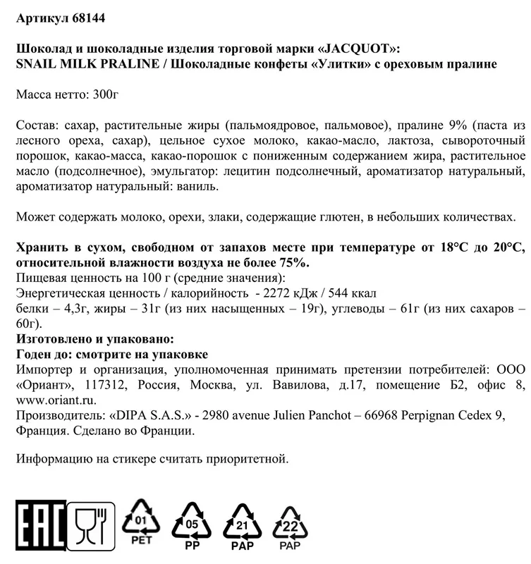 Внешняя оболочка - это безупречный молочный шоколад Witor’s, созданный по особому рецепту. Он тает удивительно нежно и плавно, лаская небо своей бархатистой сливочностью и ореховыми нотами.