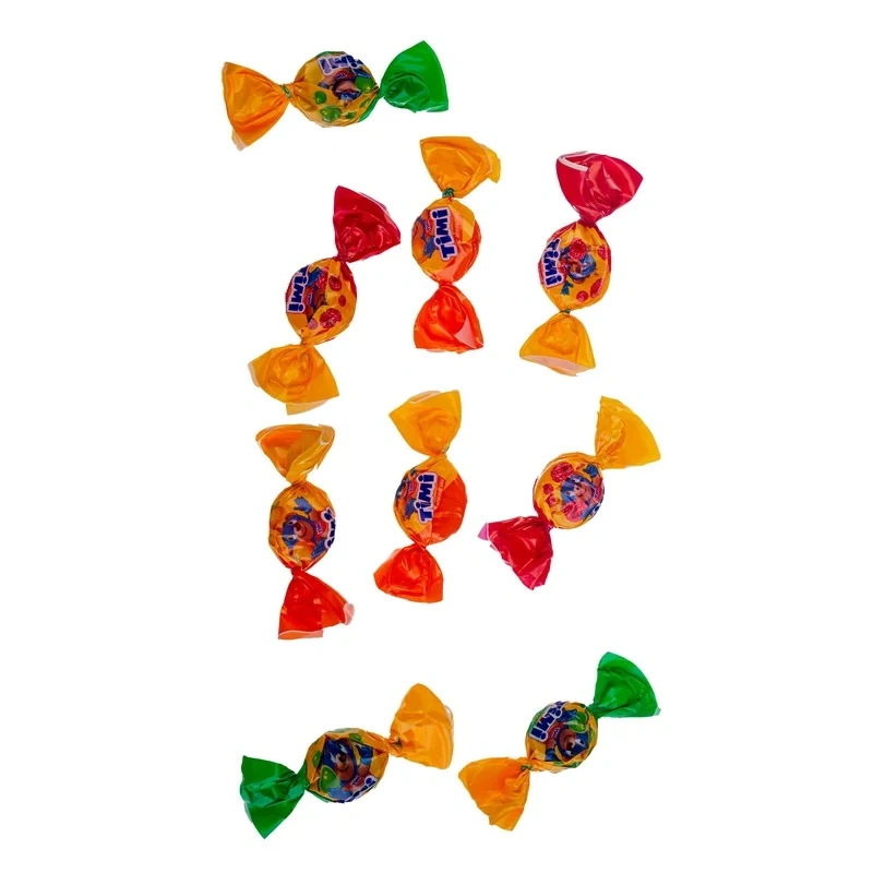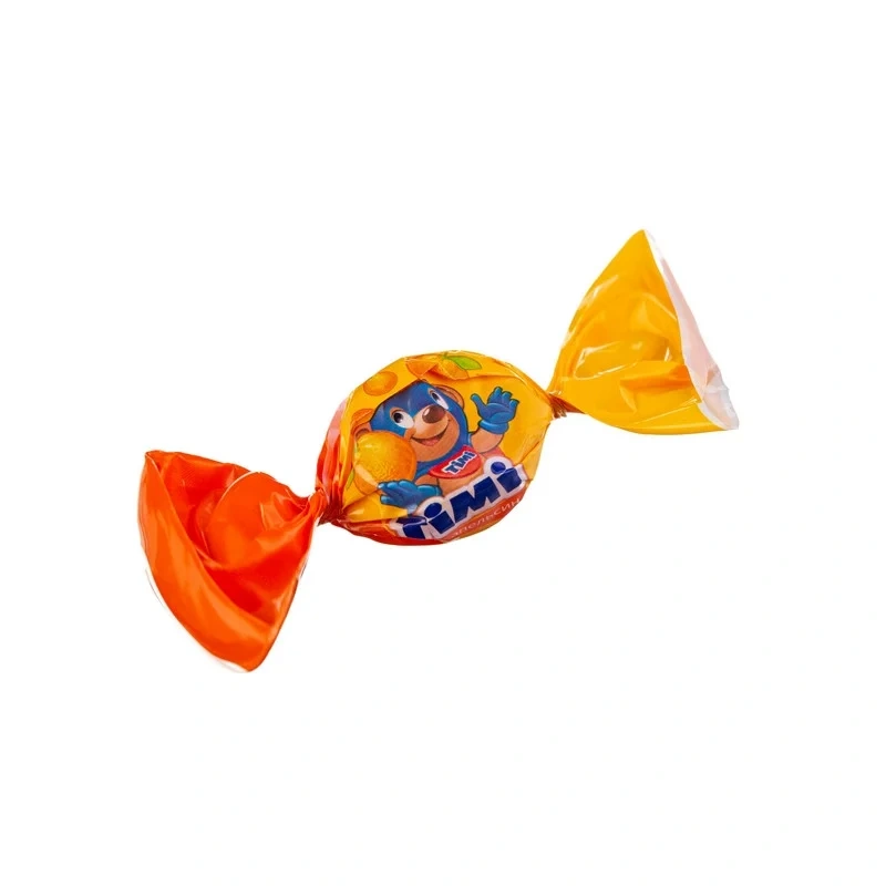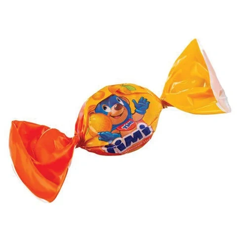 Микс из трех желейных конфет с жидким, сочным центром со вкусами яблока, апельсина и малины. Конфеты «Timi mix». Состав: патока кукурузная крахмальная, сахар, агент влагоудерживающий сорбит, агент желирующий каррагинан, регуляторы кислотности (кислота молочная, кислота лимонная, цитрат натрия), комплексная пищевая добавка глазирователь «Капол» (глазирователь (5 −12 %) воск карнаубский, антиокислитель альфа-Токоферол, регулятор кислотности лимонная кислота), краситель кармины, агент желирующий пектин, ароматизаторы, экстракт шпината, краситель куркумин, сок яблочный концентрированный, сок малины концентрированный, сок апельсиновый концентрированный. Может содержать следы молока и продуктов его переработки, диоксида серы. Температура хранения (18±3) °С при относительной влажности воздуха не более 75 %. Пищевая ценность 100 г продукта: белков — 0.0 г; жиров — 0.3 г; углеводов — 80 г. Энергетическая ценность (калорийность) 100 г продукта — 1300 кДж (310 ккал). Содержит конфеты: «Timi» вкус яблоко, «Timi» вкус апельсин, «Timi» вкус малина.