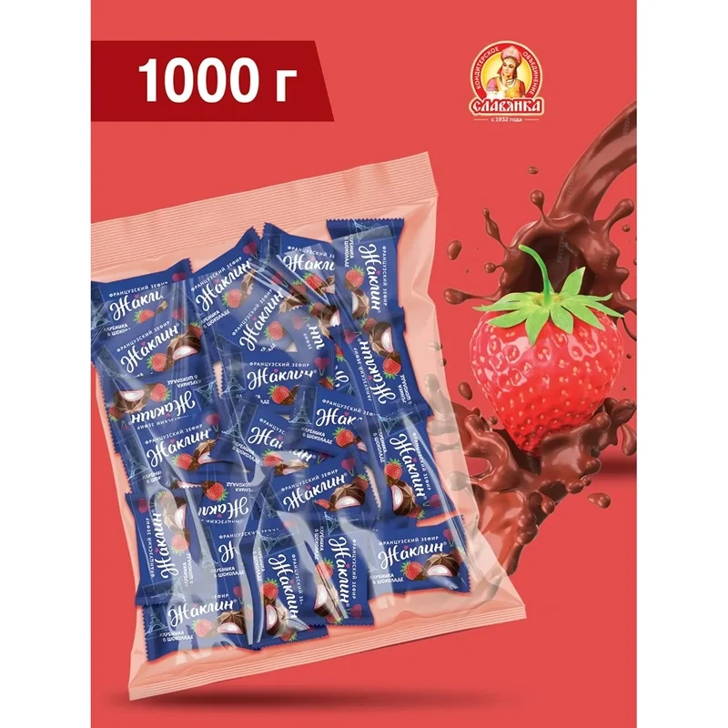 Конфеты Славянка Жаклин, французский зефир, со вкусом клубники в шоколаде, 1кг