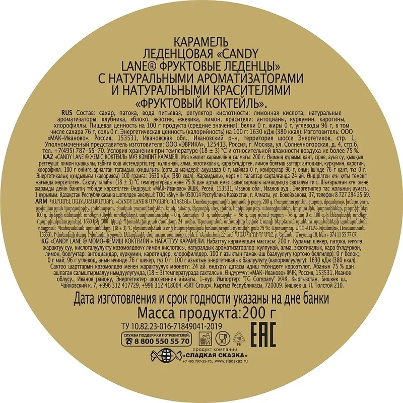 Леденцы Candy Lane Фруктовый коктейль, 200г