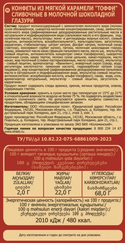 Конфеты желейные Шоколадница сливочное тоффи, 160г