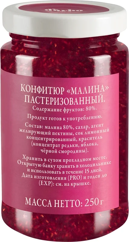 Конфитюр D'arbo 80% фруктов малина, 250г
