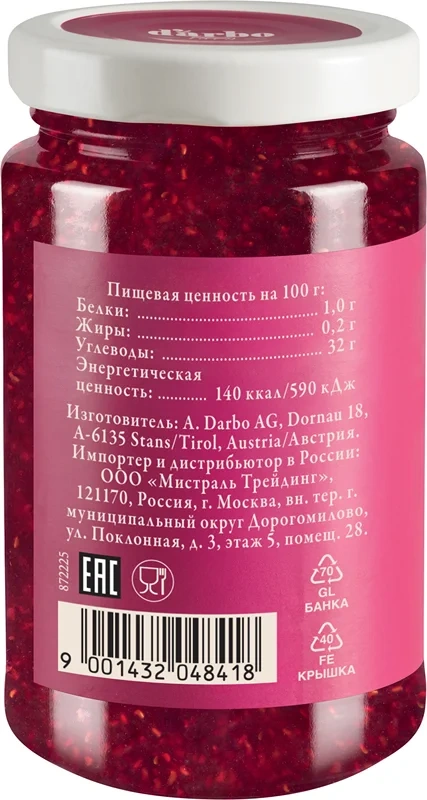 Иногда меньше значит больше. Любой, кто хочет есть меньше сахара, будет рад конфитюру, где много фруктов. В ногу с тенденциями здорового образа жизни 80 % содержания фруктов и на 1/3 меньше сахара по сравнению с традиционными джемами. Не содержит заменителей сахара, консервантов и ароматизаторов. Darbo - международный бренд, зарекомендовавший себя на ведущих мировых рынка. Конфитюры с содержанием фруктов 80% изготовлены на высокотехнологичном заводе в Австрии. Только отборное сырье из лучших регионов мира. Высокий процент содержания натуральных фруктов и ягод.