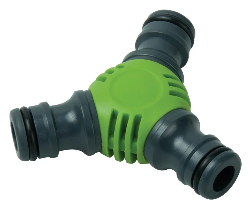 Тройник для быстросъёмного соединения изготовлен из РР - полипропилен + АБС-пластик - ударопрочная техническая термопластическая смола на основе сополимера акрилонитрила с бутадиеном и стиролом + TPR или термопластичная резина.